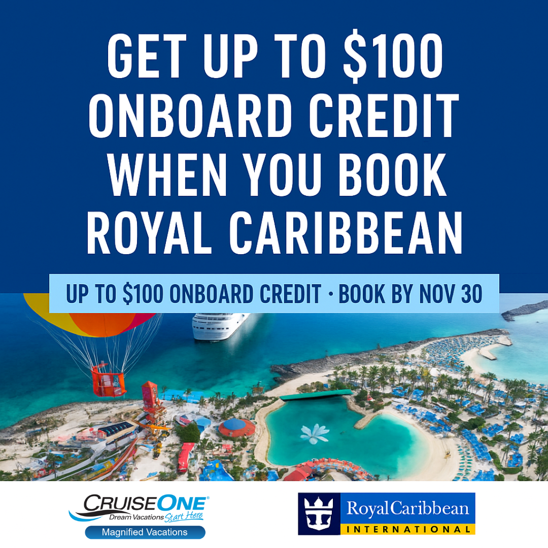 Book your next Royal Caribbean cruise with our certified local travel experts and enjoy bonus spending money onboard — only for a limited time!